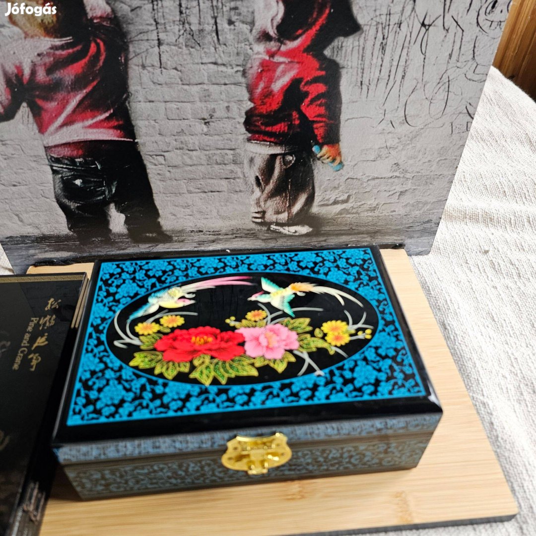 Kinai mintáju ékszer tartó doboz és paraván