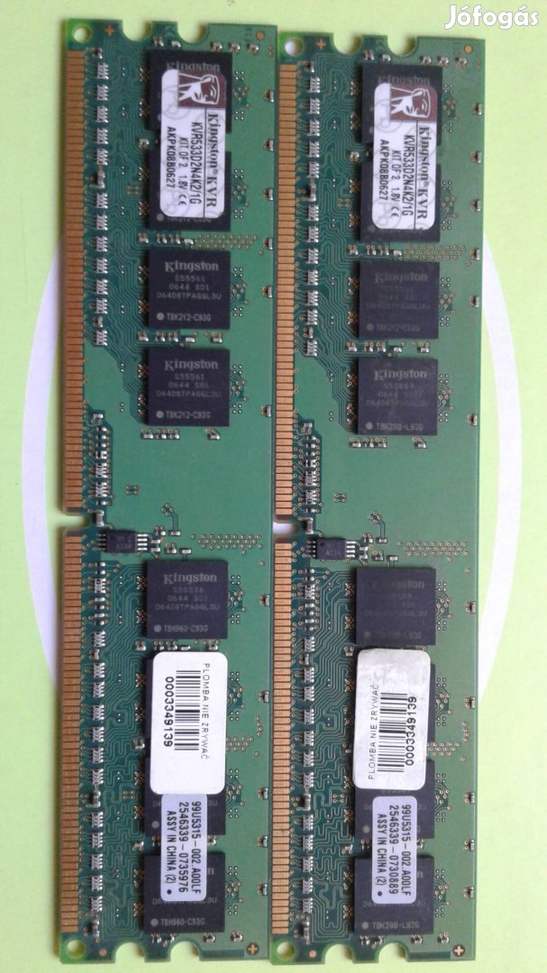 2 db Kingston típusú, 1GB-os, 1333MHz-es DDR3 RAM modul.