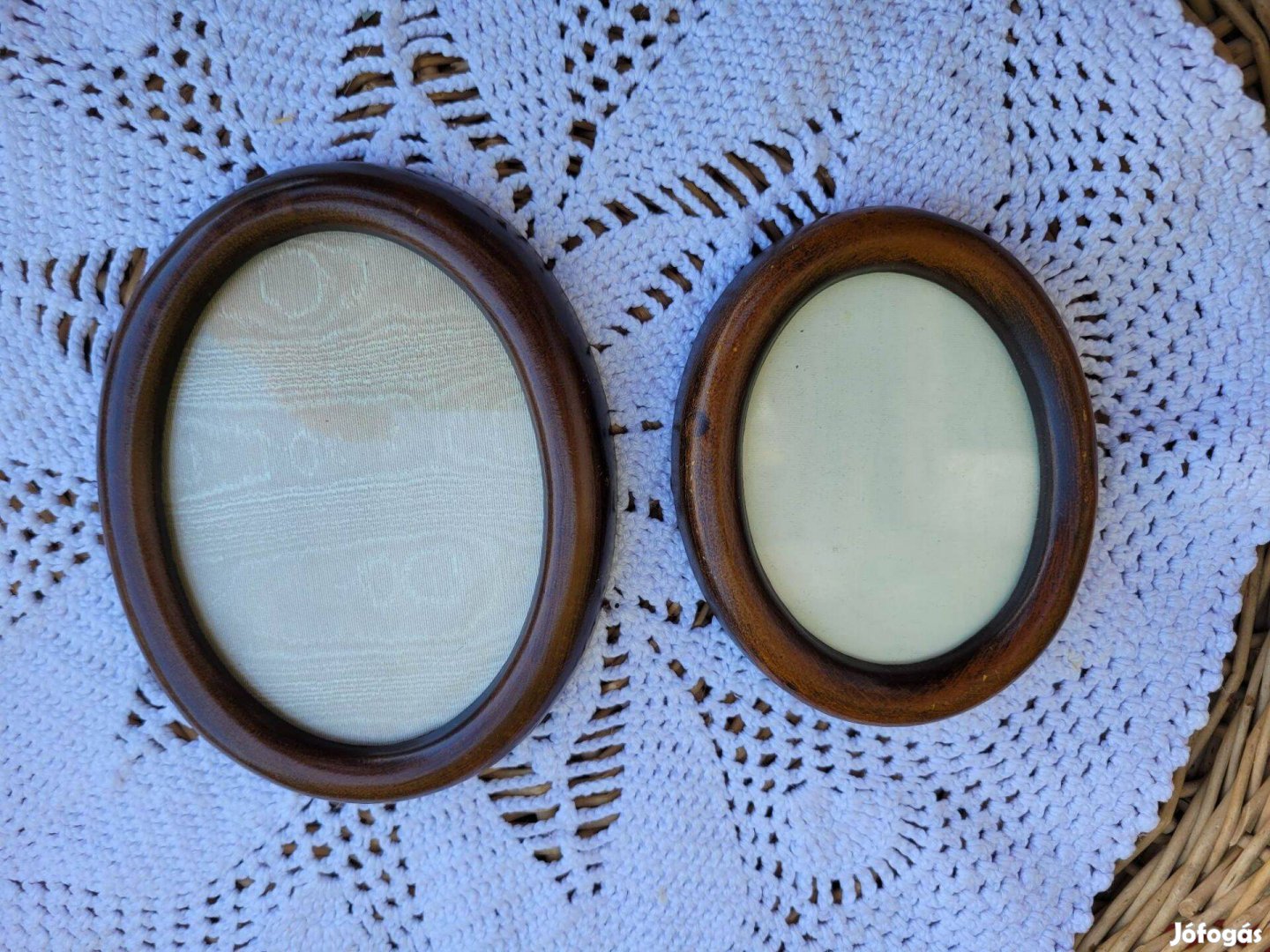 Eladásra kínálom a képen szereplő kis, ovális, fahatású képkereteket. A képek magukért beszélnek. Körbe fotóztam. Alig használt jó állapotban. Polirezin, üveglap.