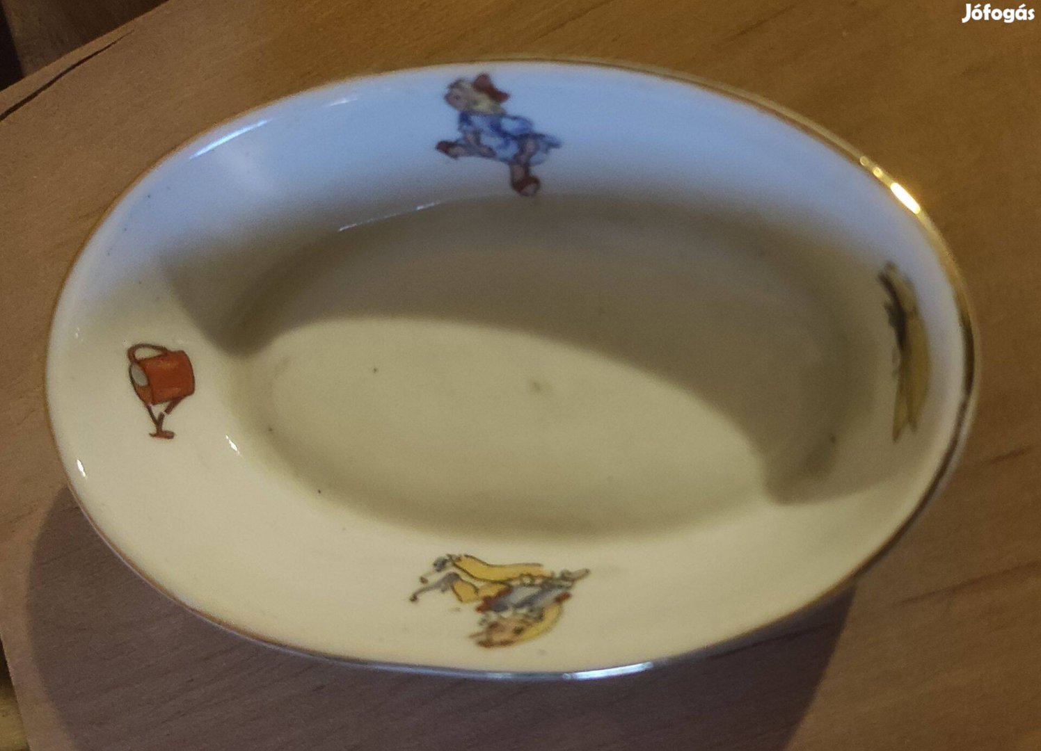 Kb. 10 cm átmérőjű, aranyos mesefigurás tál eladó. Kicsi, dekoratív darab, tökéletes gyerekeknek, aprósüteményhez, édességekhez vagy gyűjtői célra. Vidám mintája miatt bármely asztalon jól mutat, praktikus és mutatós kiegészítő.