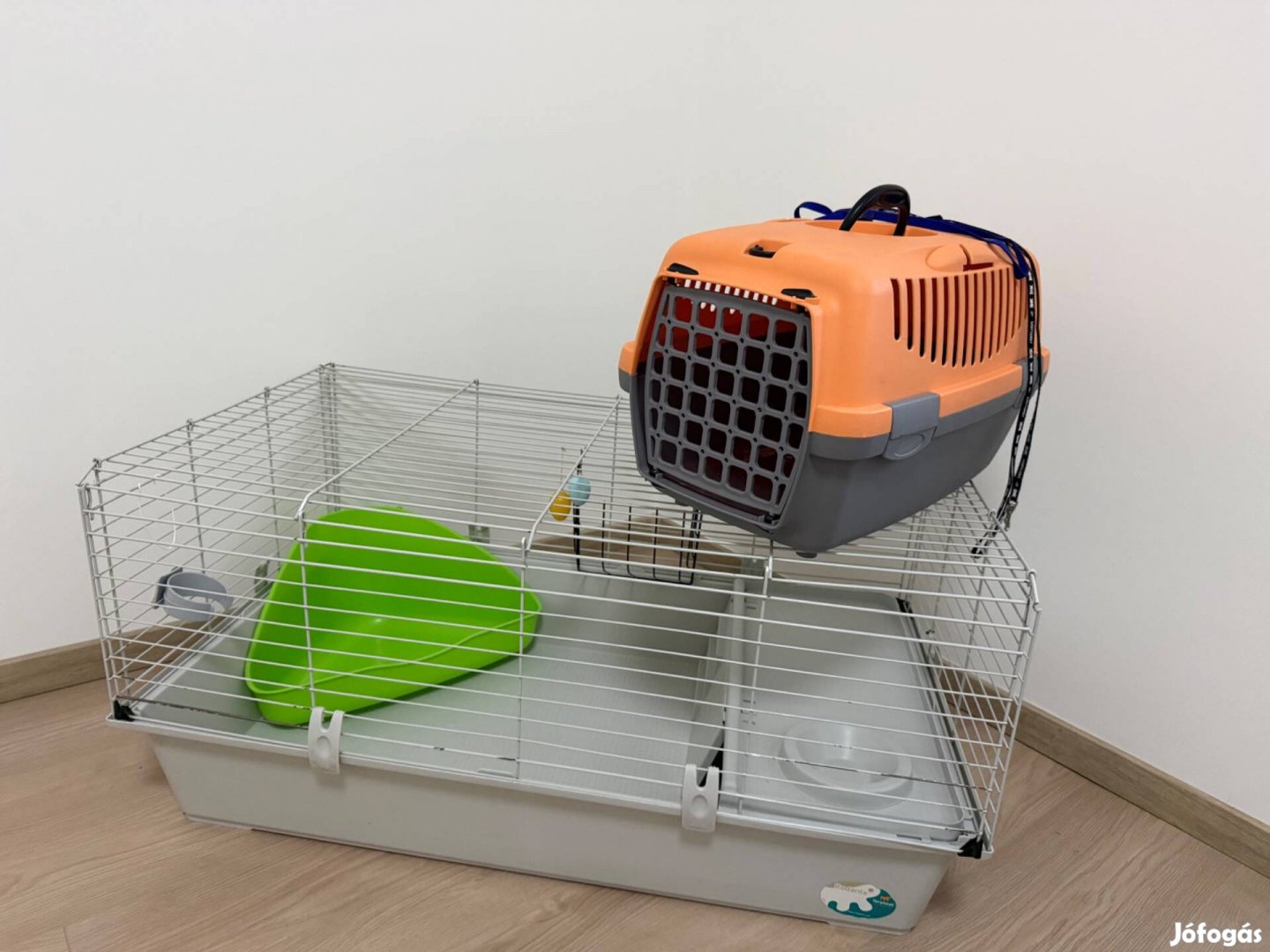 Kisállatketrec és hordozó. Használt; korábban törpenyúl szállásolására szolgált.