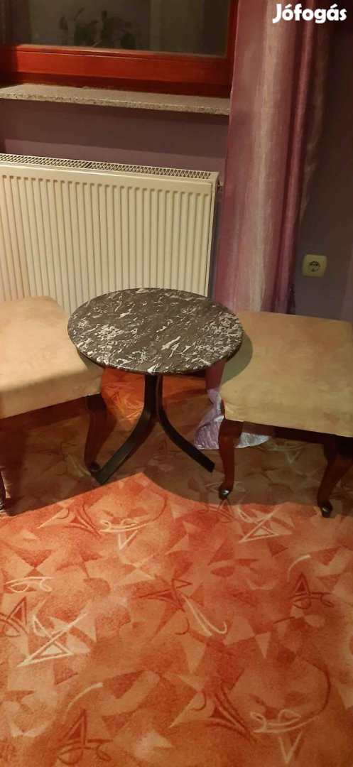 Elado, egy márványlapos kisasztal, 2 db puff székkel,egyben és külön is evihetö!!