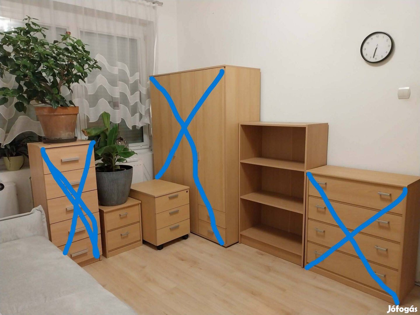 Fiókos kisbútorok és polc, plusz 10 m2 világos színű szalagparketta eladó! Méretek a képen! Szállításban nem tudok segíteni! Budapest 10. ker.
