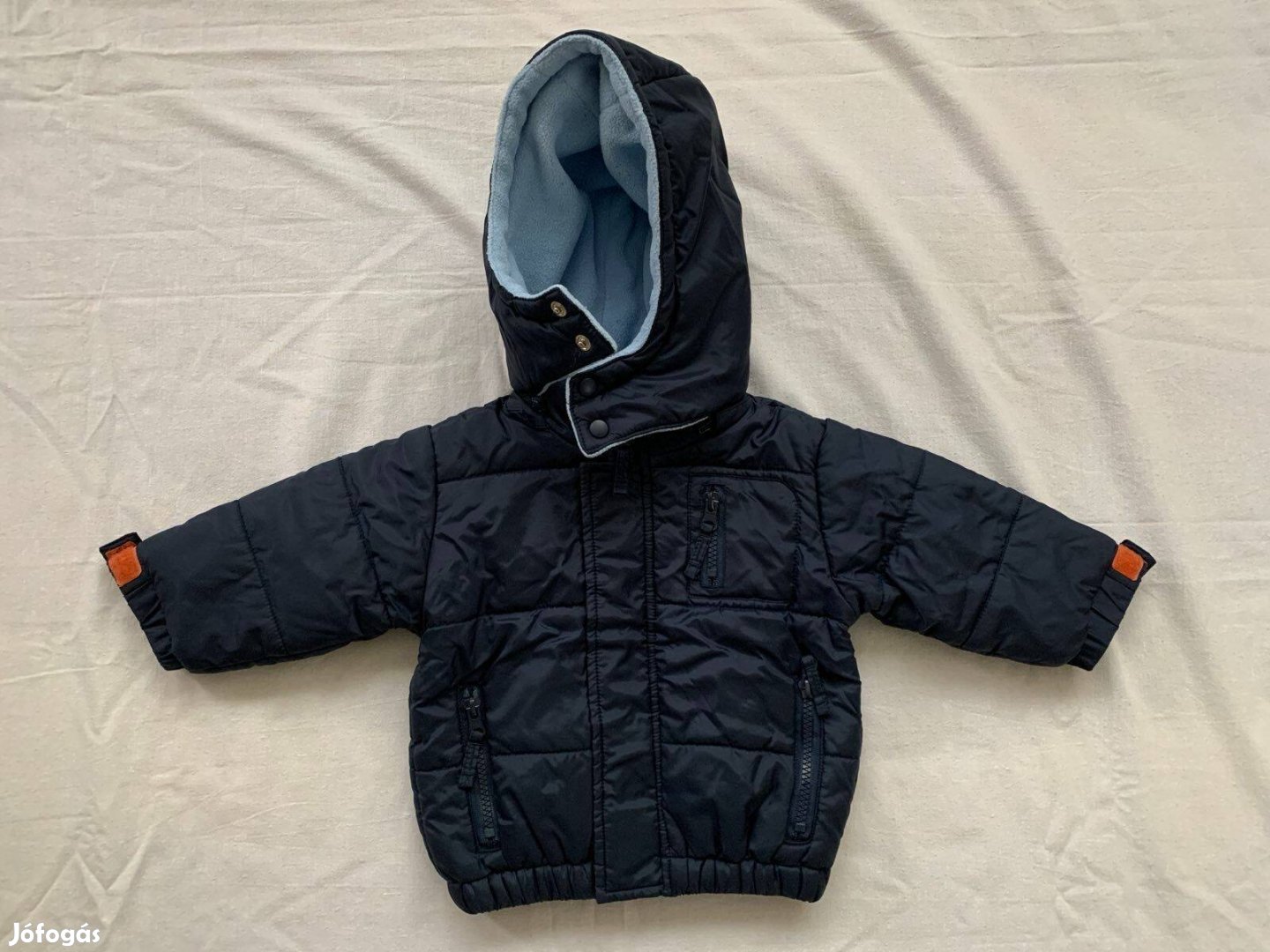 Eladó egy kisfiú átmeneti dzseki 86-os méretben, sötétkék színben.