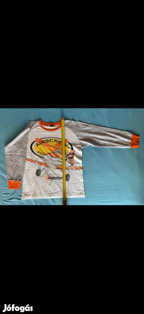 Eladó 100 % pamut 128-134-es méretű kisfiú pizsama (Repcsik minta).
