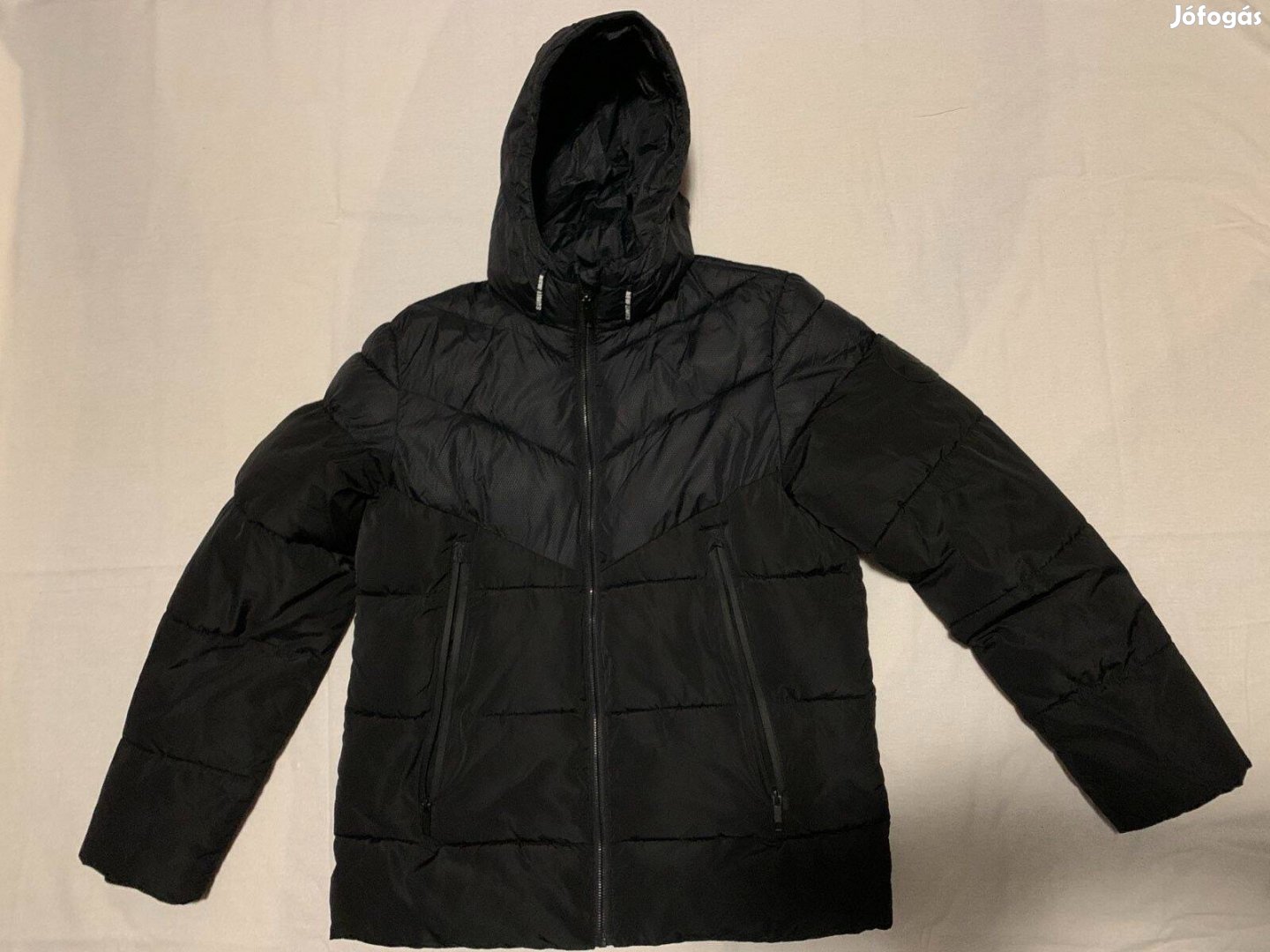 Eladó egy kisfiú télikabát, dzsekis külső, csuklyás. C&A-ban vásárolt, 164-es méretben. Színe fekete.