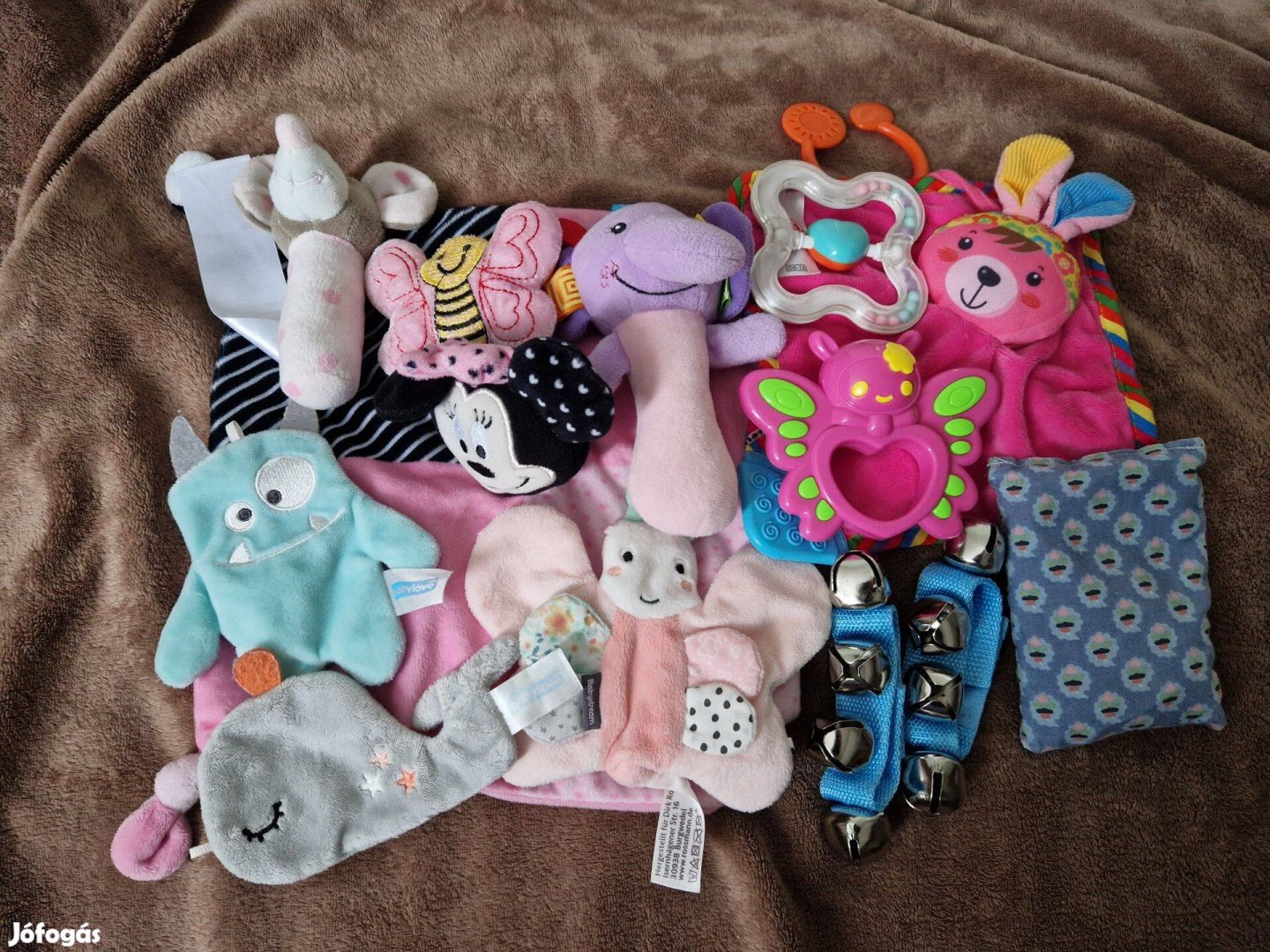 Használt, de szép állapotú játékok, szundikendők, csörgők.
