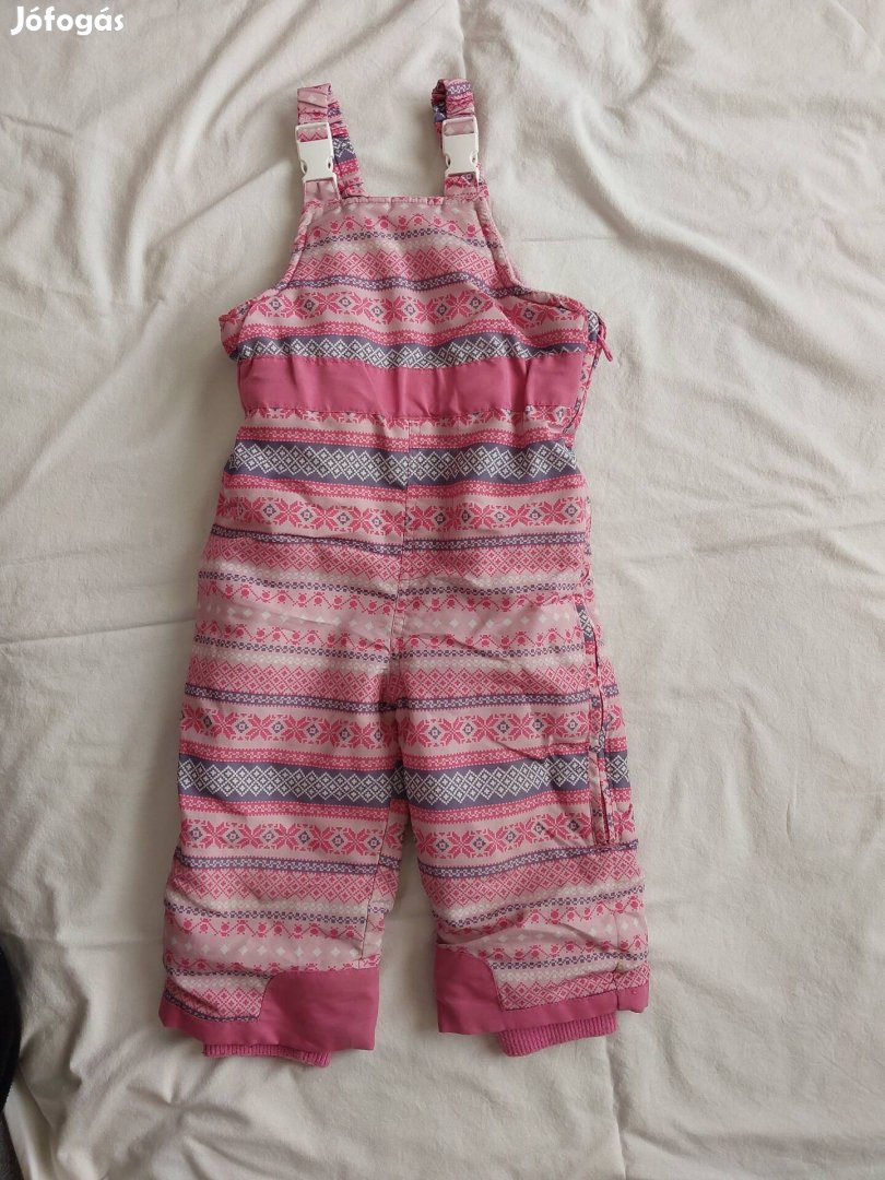 Szép állapotú rózsaszín mintás kantáros overál, oldalán cipzárral. Könnyű belebújni.