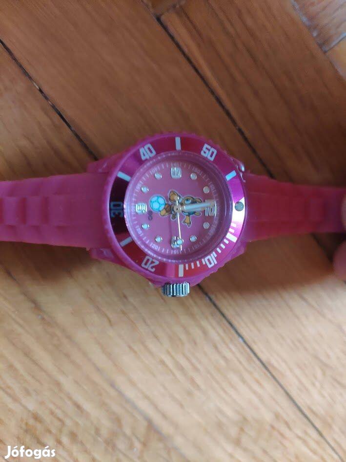 Eladó újszerű állapotban lévő (nem használt) rózsaszín, szilikon szíjjas kislány karóra.