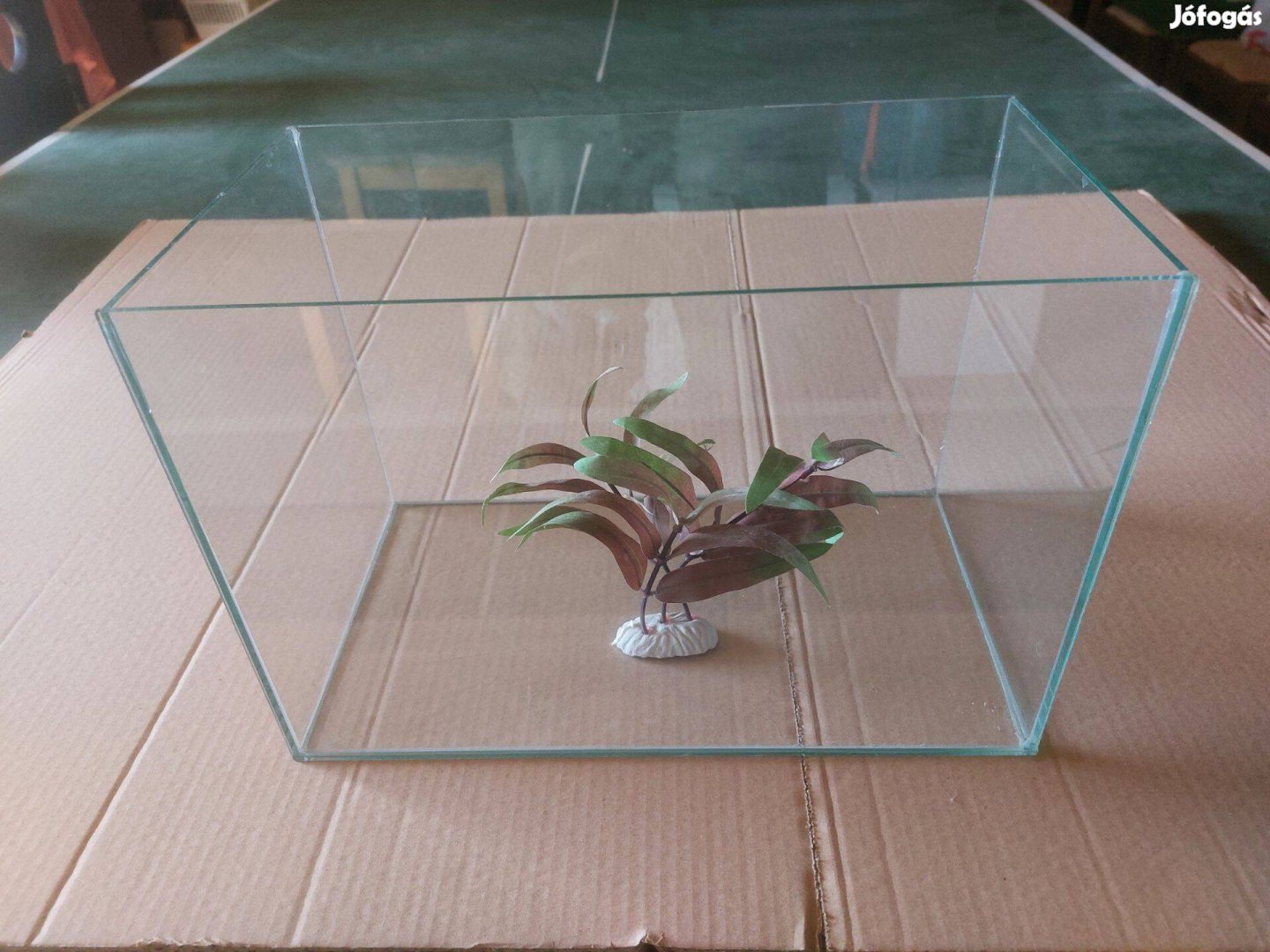 Eladó kisméretű, 15 literes akvárium. Méretei 34 cm hosszú, 19 cm széles, 24 cm magas. Természetesen a képen látható élethű műnövény is vele jár.