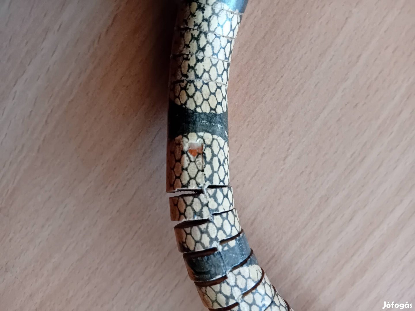 55 cm-es fából készült barna-világosbarna kobra kígyó.