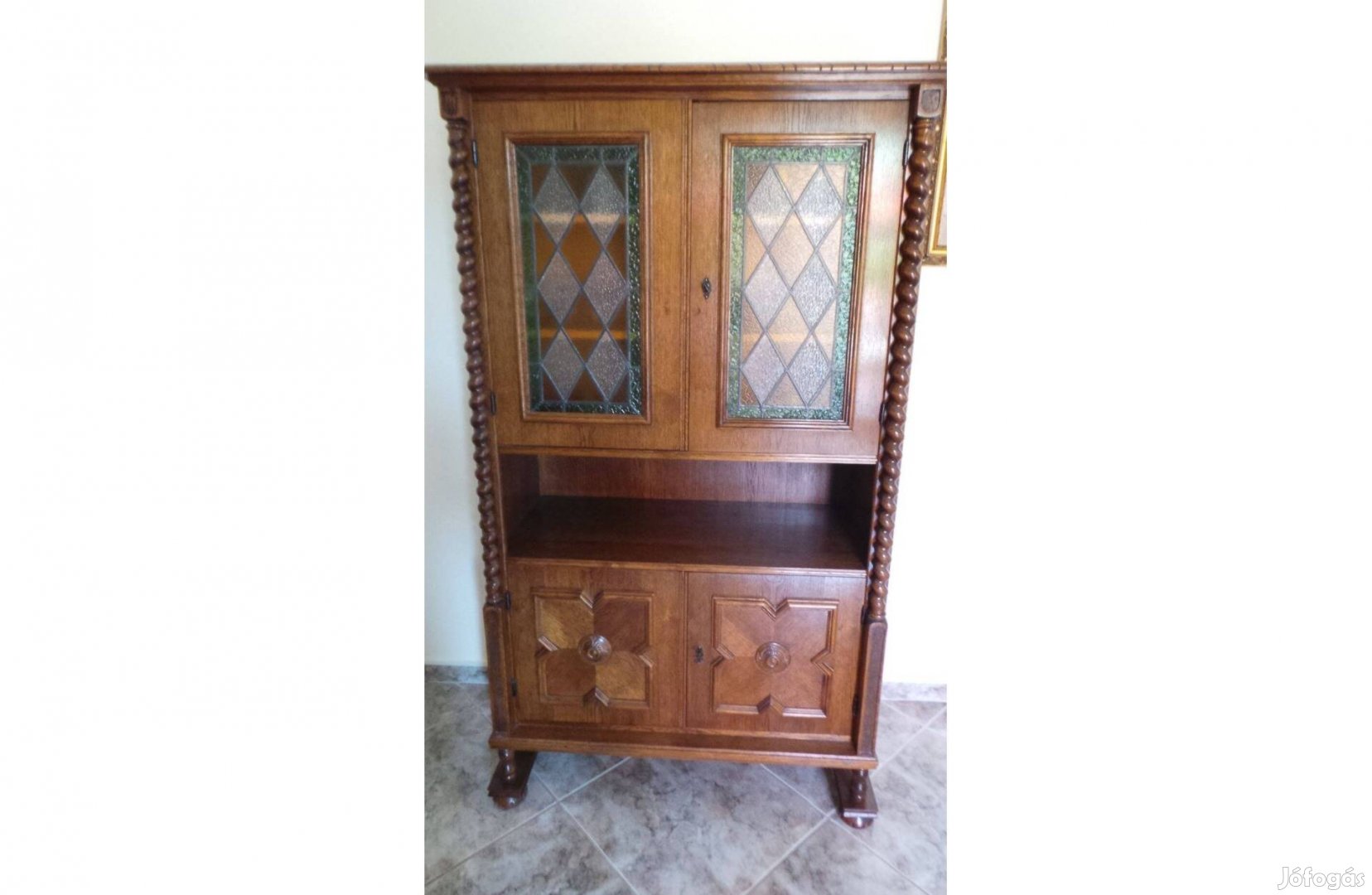 Koloniál Bárszekrény Ólomüveg Berakásos Ajtóval.