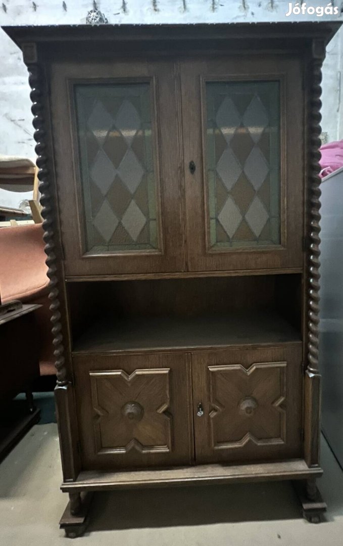 Koloniál négy ajtós vitrines bárszekrény