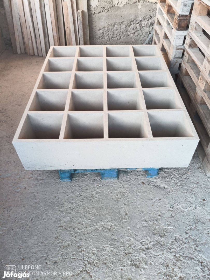 30 x 30 x 30 cm-es fakkokat tartalmazó műkő urnatartó rekesz, temetői kegyeleti épitmény kialakitásához. Önálló kolumbárium falnak, két darab egymásnak háttal állitva vizálló válaszfallal, szabadterületre sátortetővel, ravatalozó falához lábazatra állitva előrelejtős műkő fedlappal, stb.-stb...