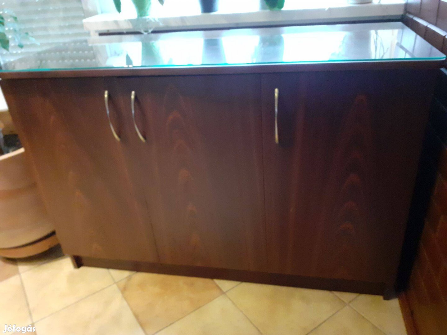 Két pakolórészre osztott, 120 szé.x 48mé.x 81ma. mahagóni színű komód, tetején edzett üveggel (ez igény szerint sérülésmentesen levehető), hibátlan állapotban eladó. Hirdetéseim között hozzá illő asztal is szerepel.