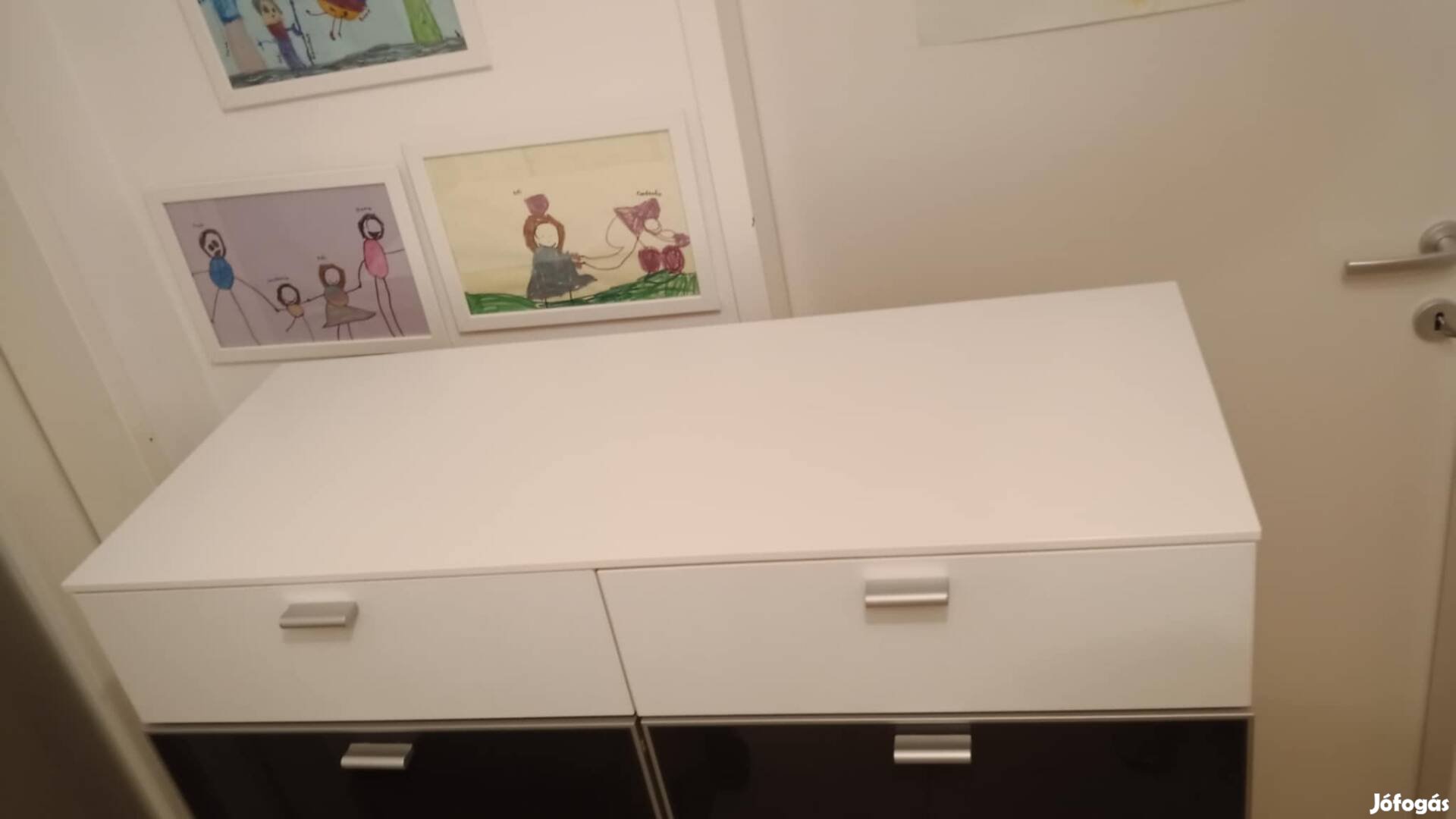 Komód újszerű állapotban, babaszobában használt. Fehér, fekete üvegajtókkal.
