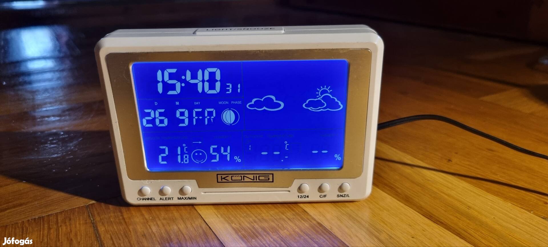 König asztali óra, hőmérséklet, páratartalom kijelzővel