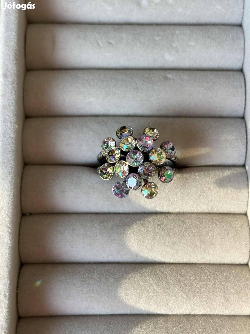 Konplott gyűrű aurora borealis színű Swarovski kristályokkal