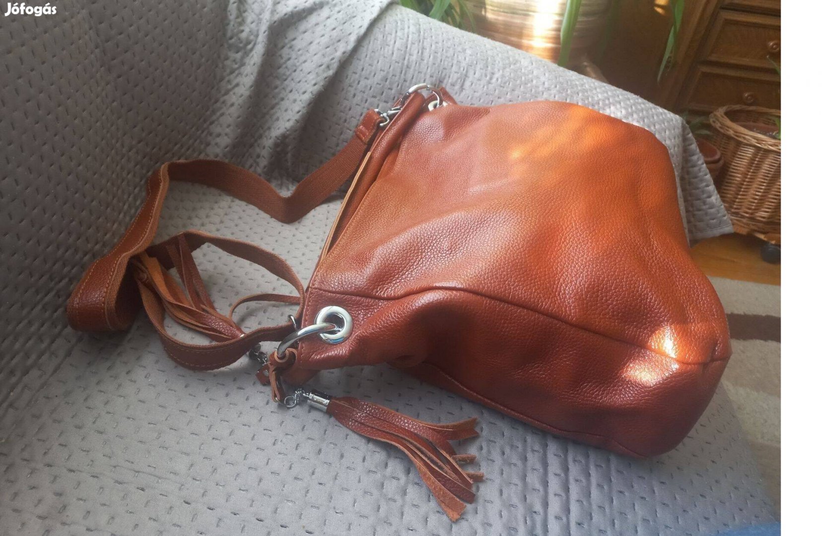 Konyakbarna valódi bőr pakolós kézi-, váll- és testtáska, új!