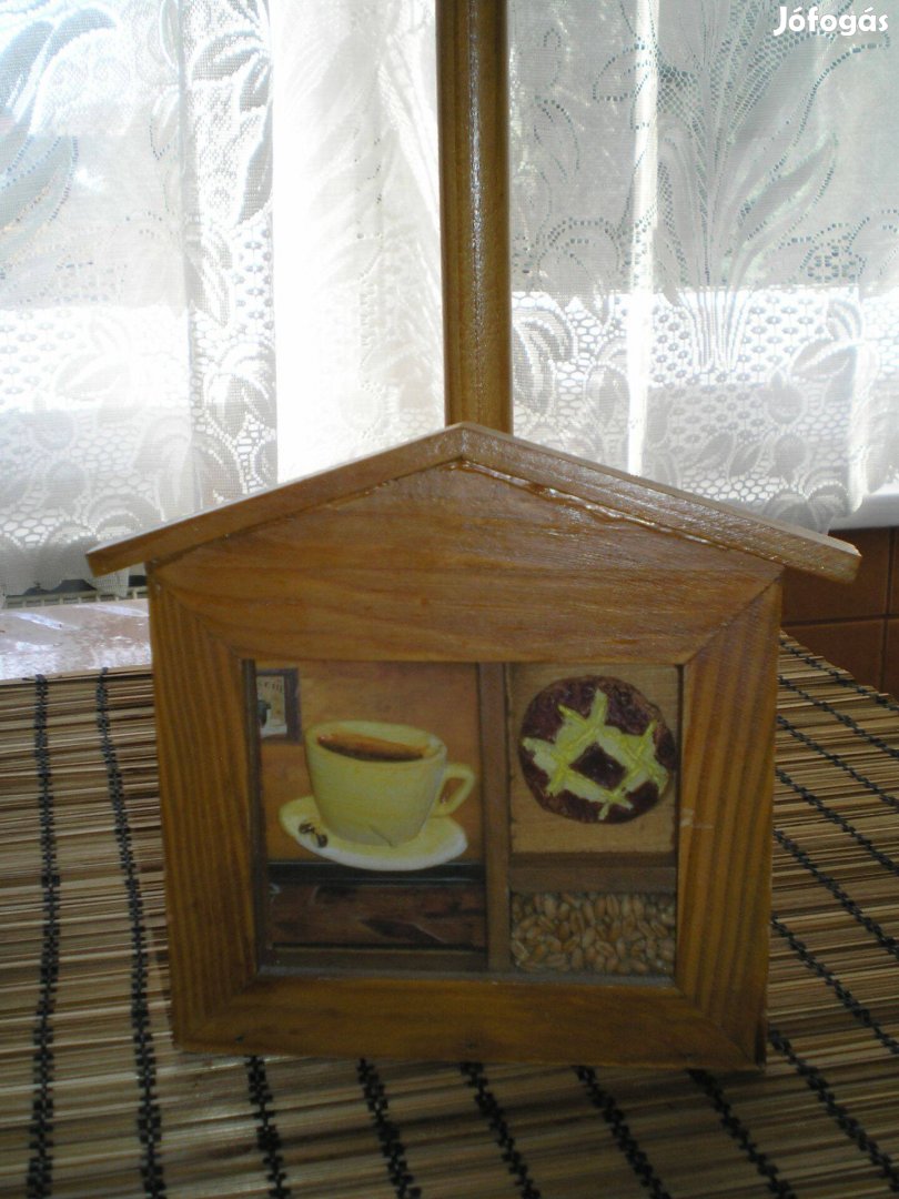 Konyhai papírtartó fából elején díszítéssel házikóforma