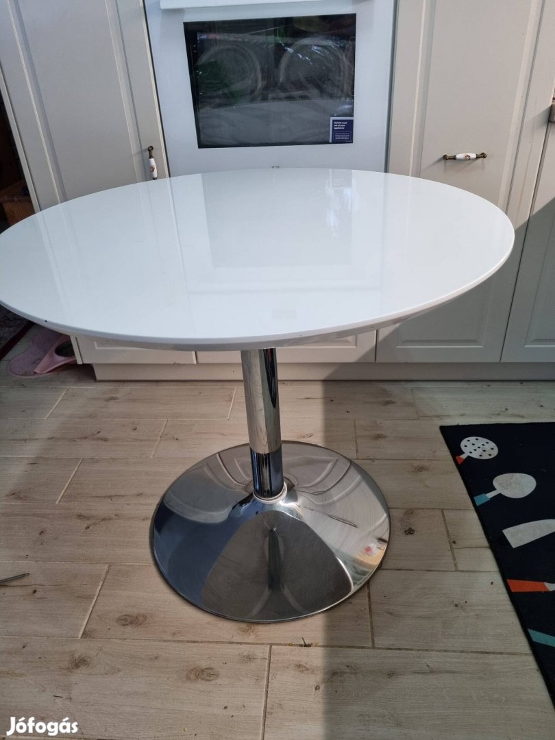 Magasfényű fehér asztallap, króm láb (magassága nem állítható)