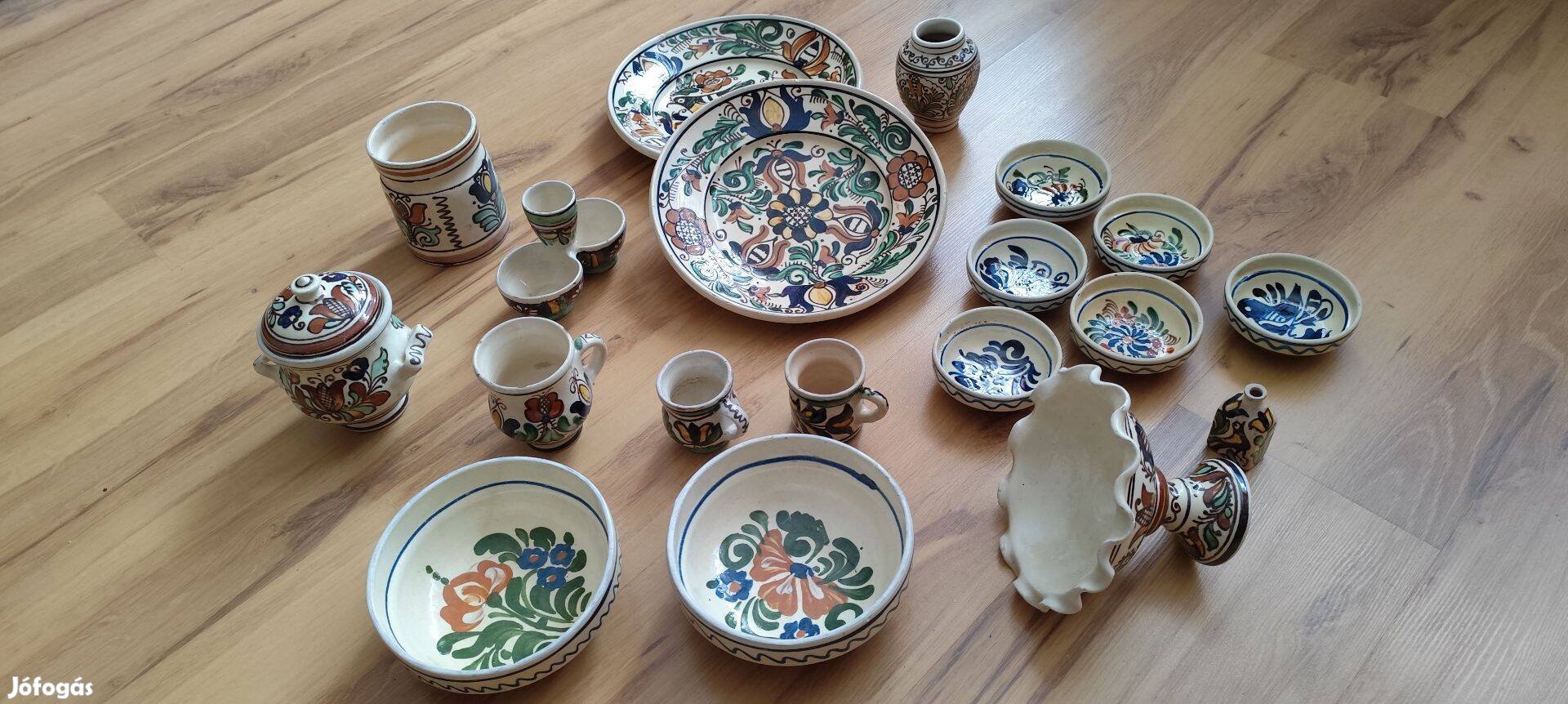 Korondi népi kézműves kerámia készlet 18 db. egyben.