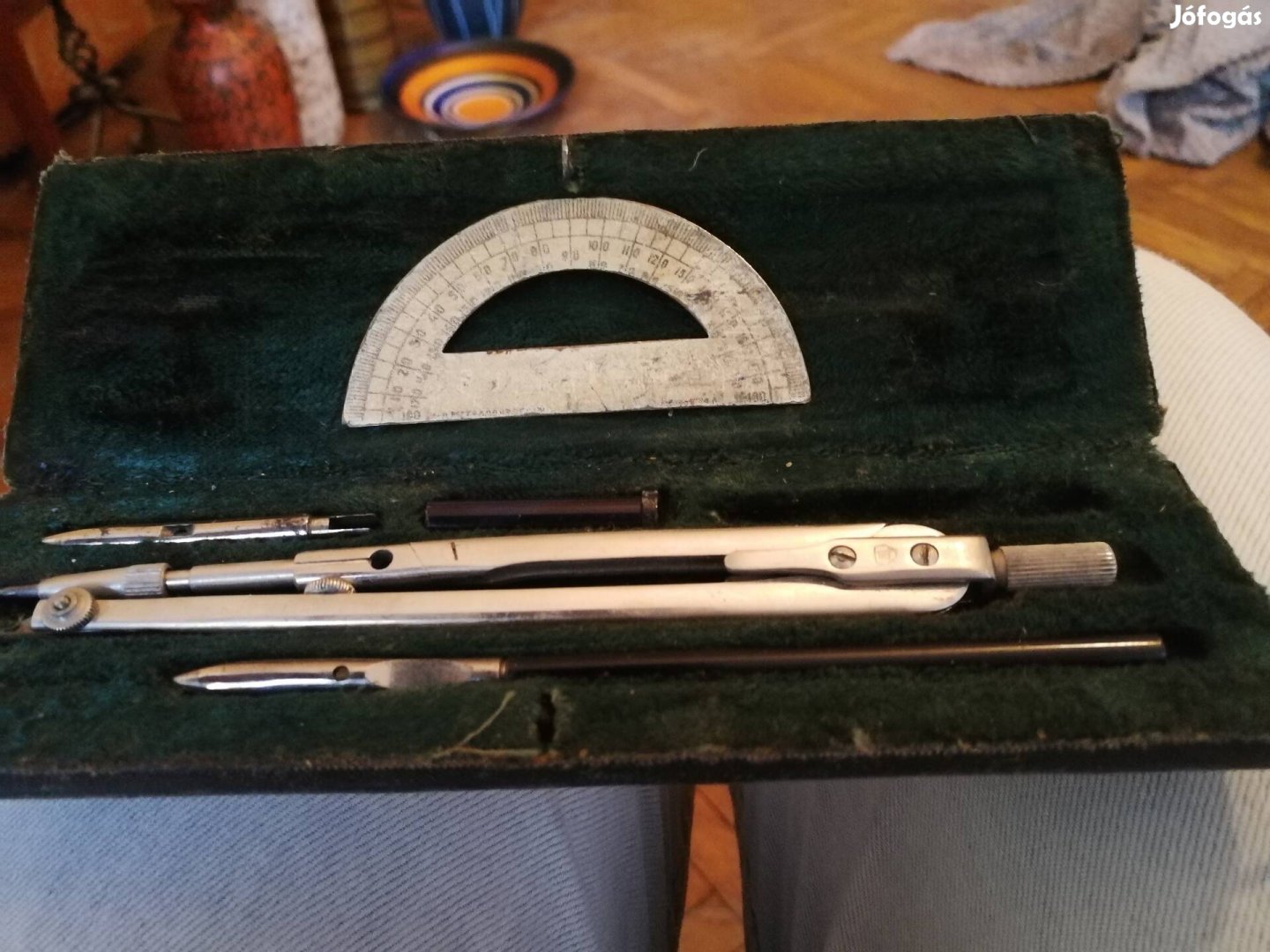 Körzőkészlet, bélelt tokkal. Retro darab