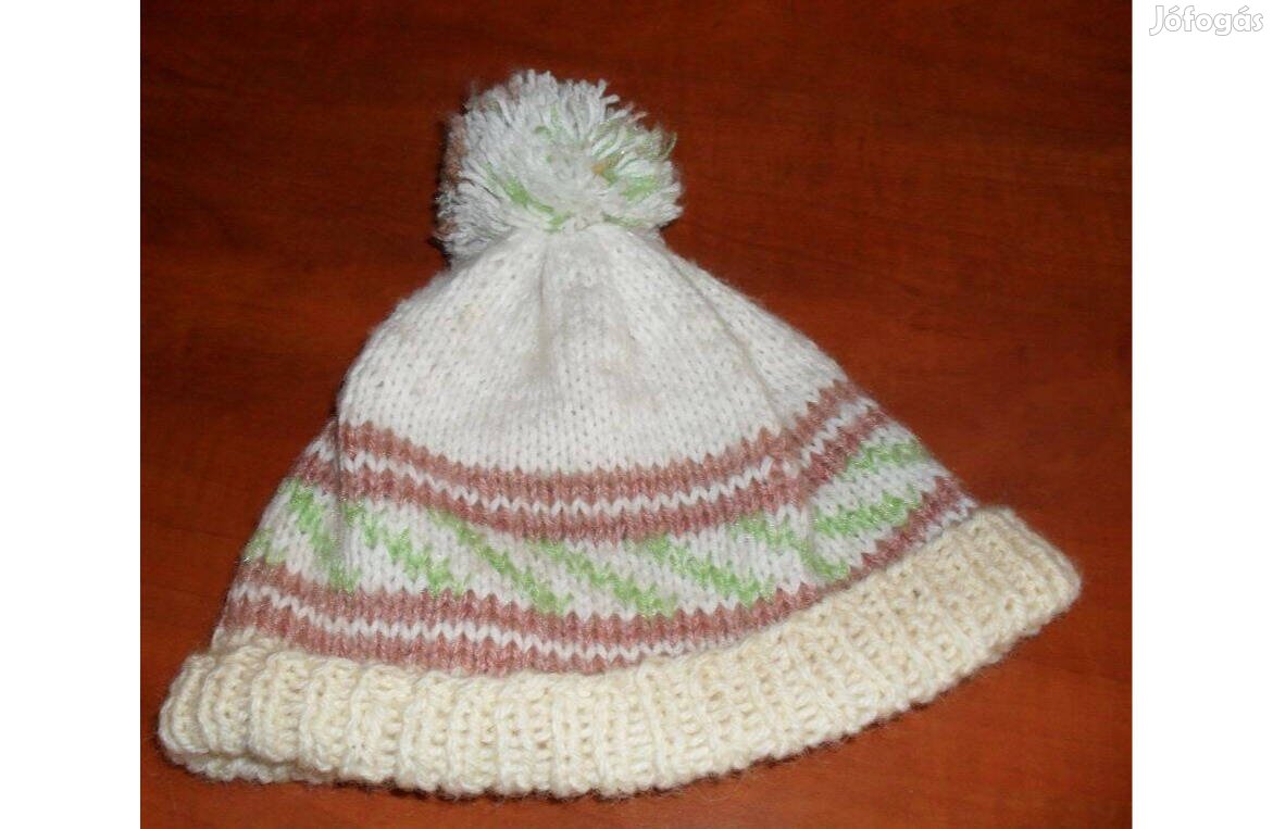 A képen látható újszerű állapotú világos színű bojtos kötött sapka 50-55 cm fejkerület, rugalmas.