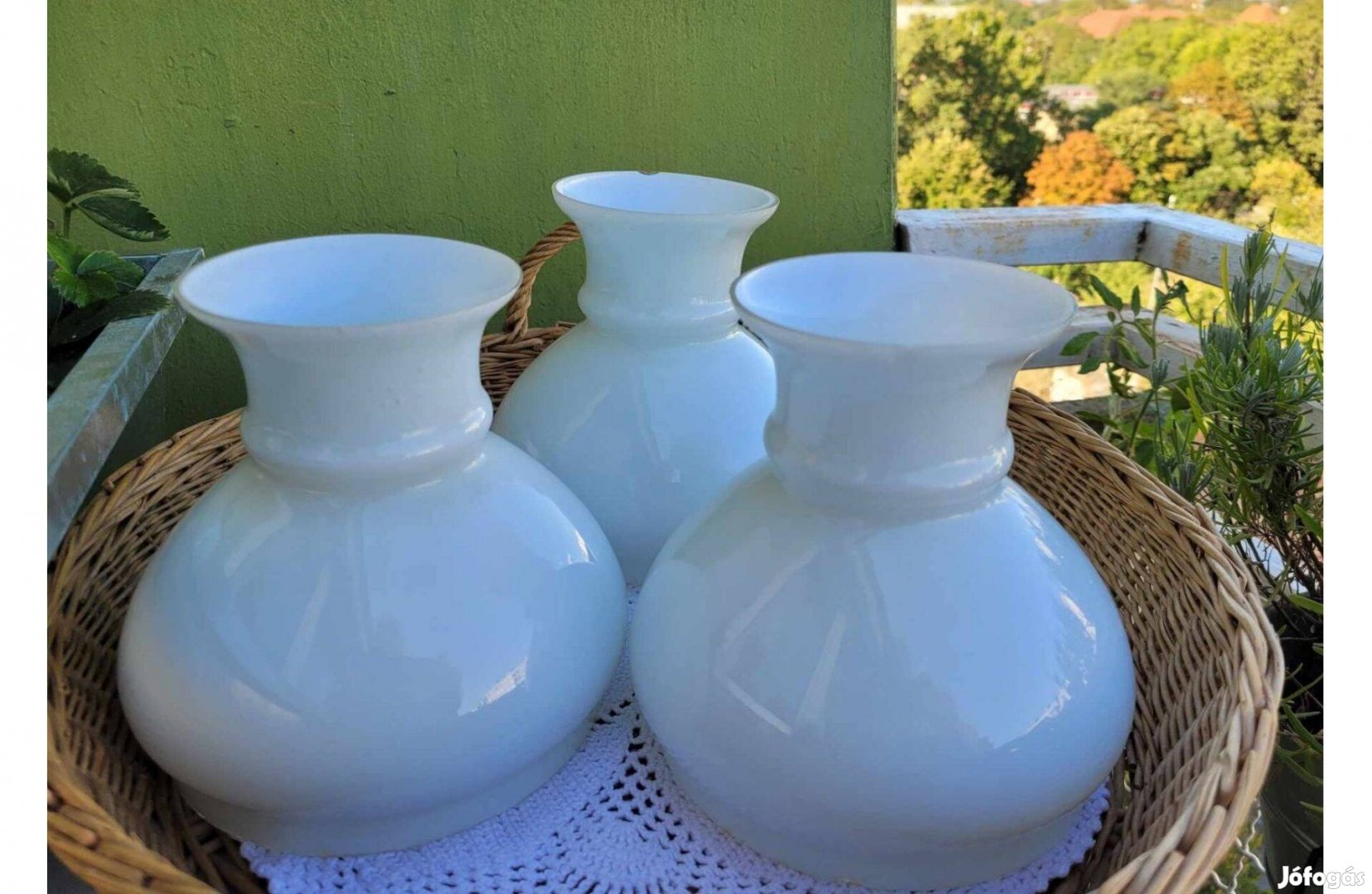 Eladásra kínálom a képen szereplő közepes méretű tejüveg lámpa búrákat. A képek magukért beszélnek. Körbe fotóztam. Falikarra, csillárra, hiánypótlásra. Mindegyik alja csipkézett, (a perem miatt takarásban van), egyik tetején apró csurbulat, alig észrevehető, fotóztam. Ritka, hogy 3 db azonos felbukkanjon. Egyesével is vihetők.