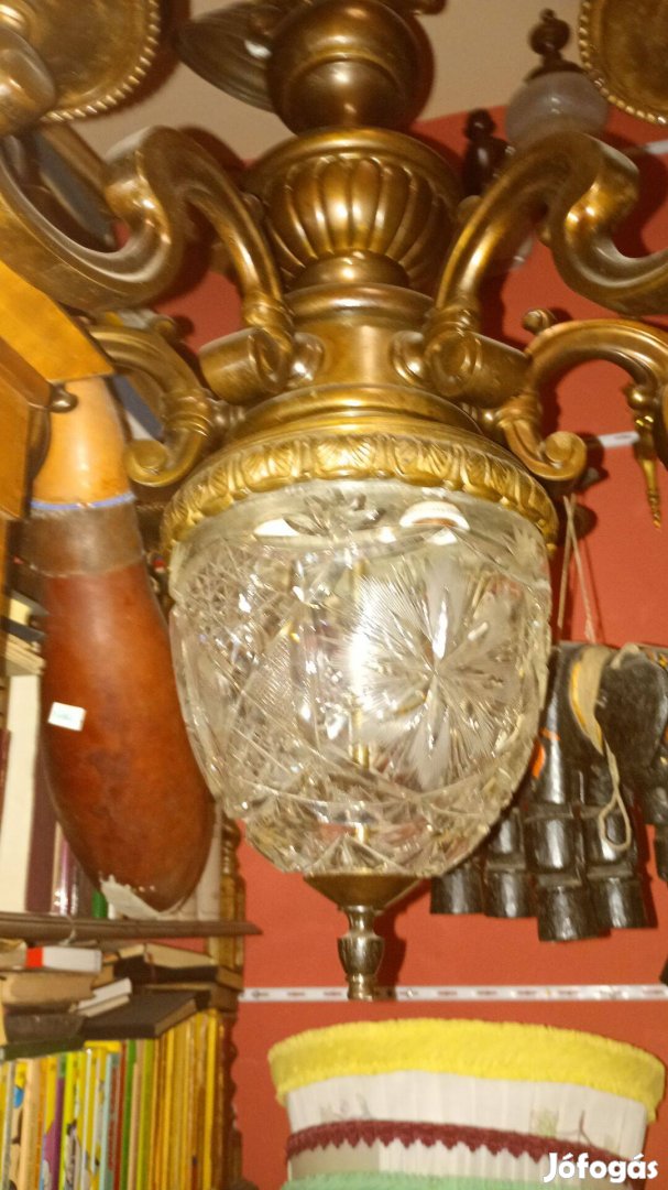 Kristály búrás bronz csillár felújítva szép állapotban!