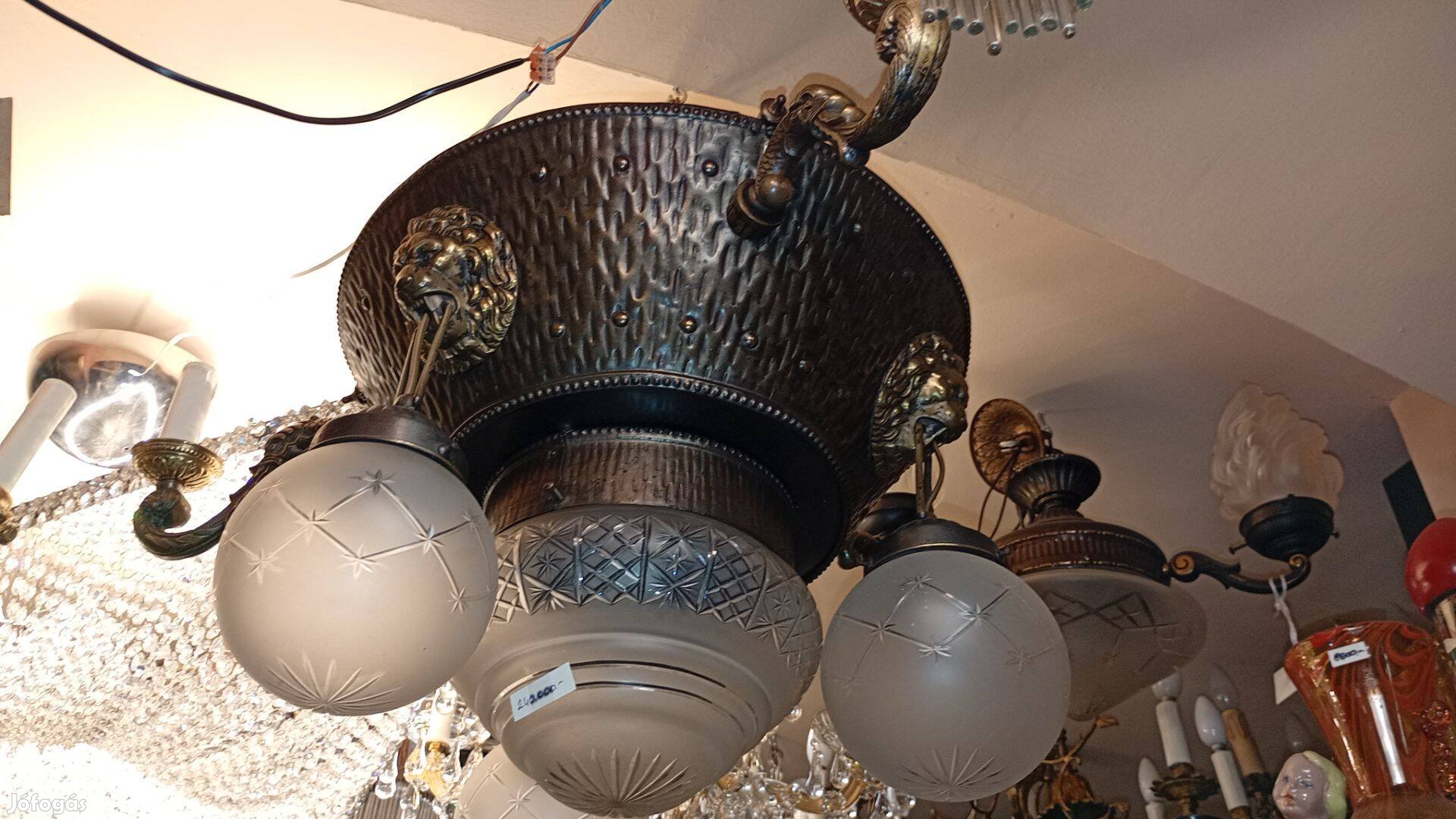 Kristály búrás mennyezeti bronz csillár felújítva szép állapotban!