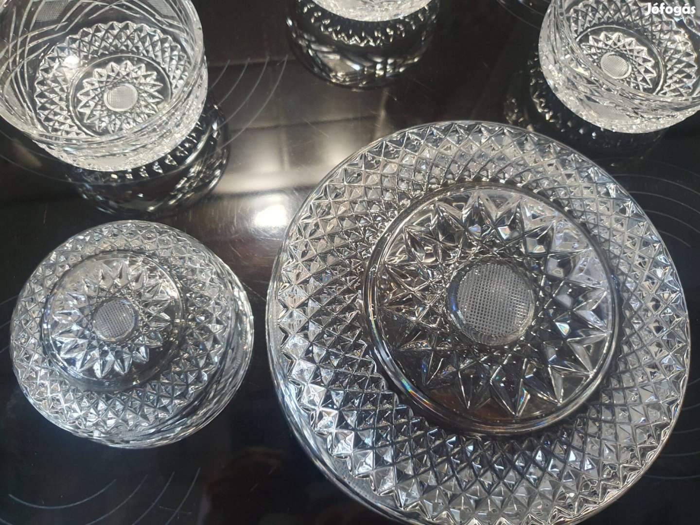20cm-es, 7.5cm magas kristály kínálótál, hibátlan, szinte sose használt. Kb 70-es évek.
