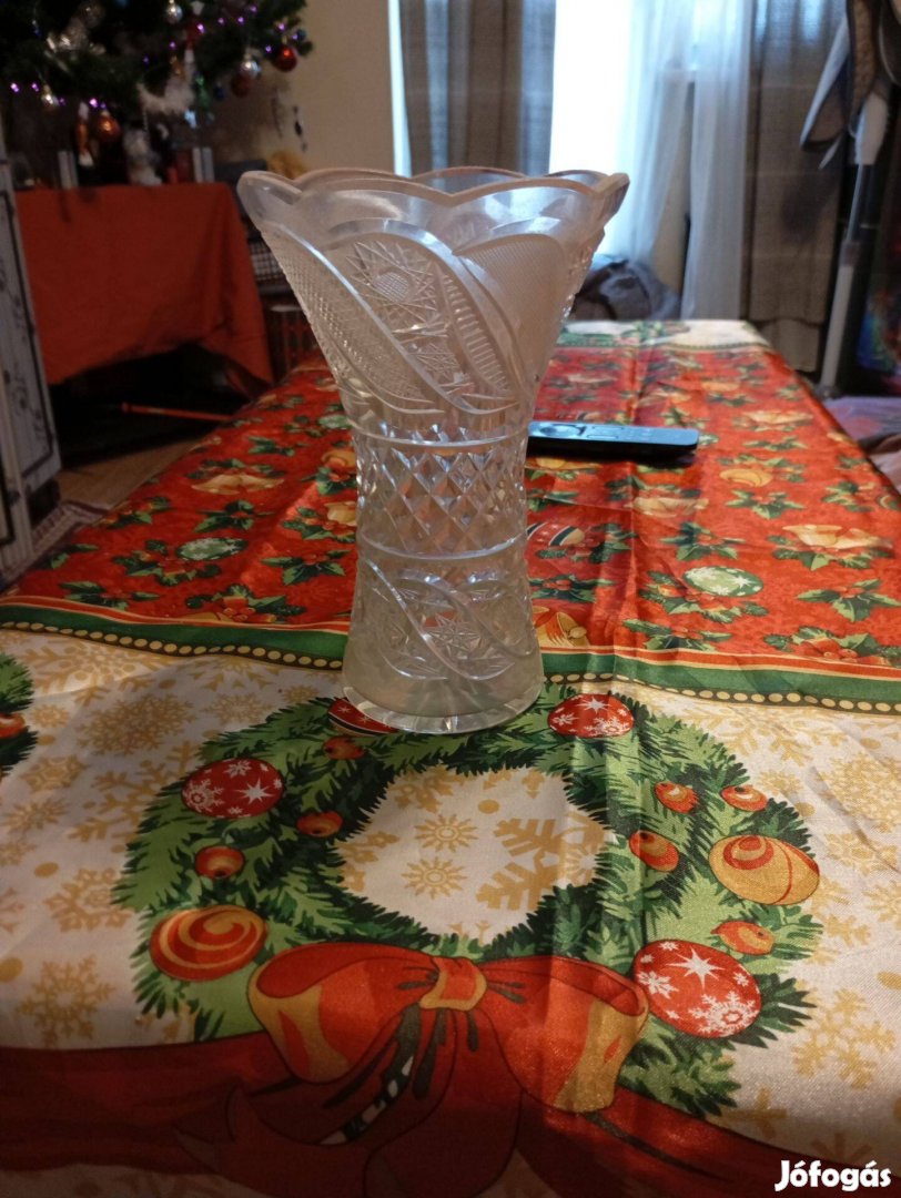 Eladó a képen látható 22-cm magas kristály üveg váza.