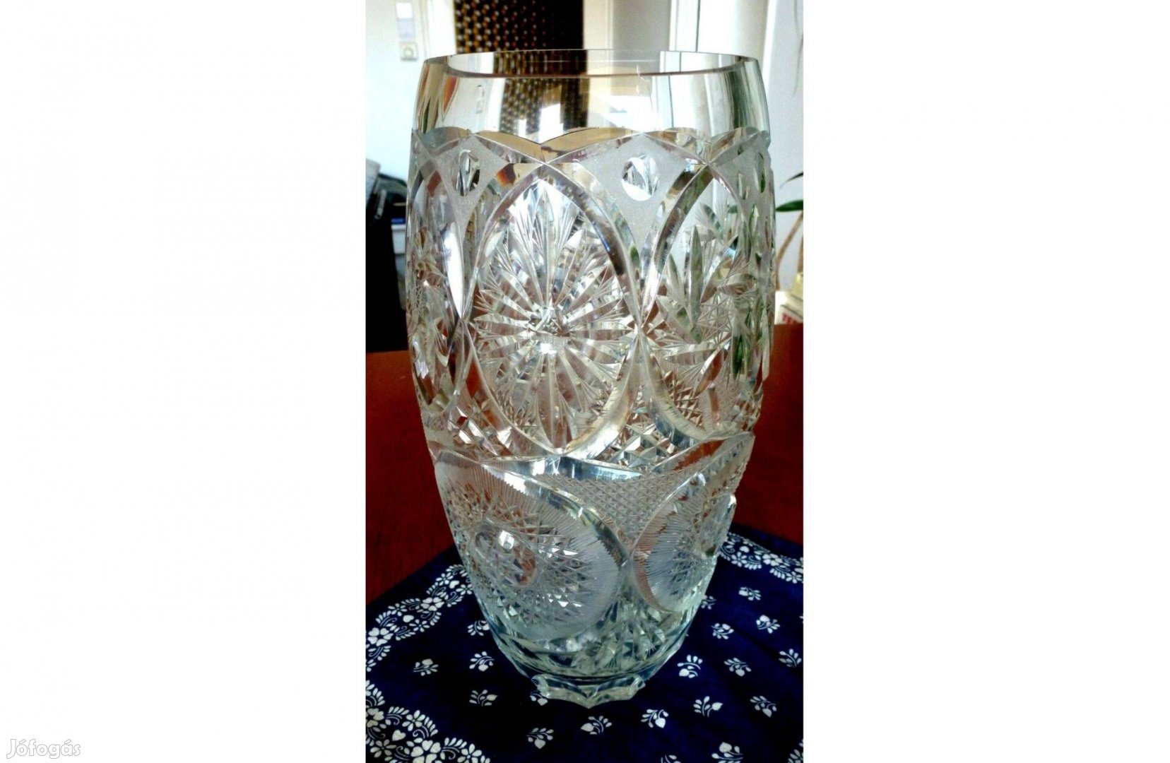 Kristályváza 1900-as évek elejéről 28 cm magas, 12 cm átmérőjű, kitűnő, hibátlan állapotú