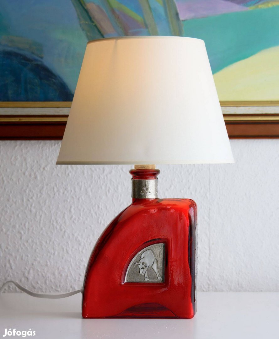 Különleges formájú üvegből készült, szakszerűen szerelt hangulatos asztali lámpa. Szállítást nem vállalok, a lámpa kizárólag személyesen vehető át.