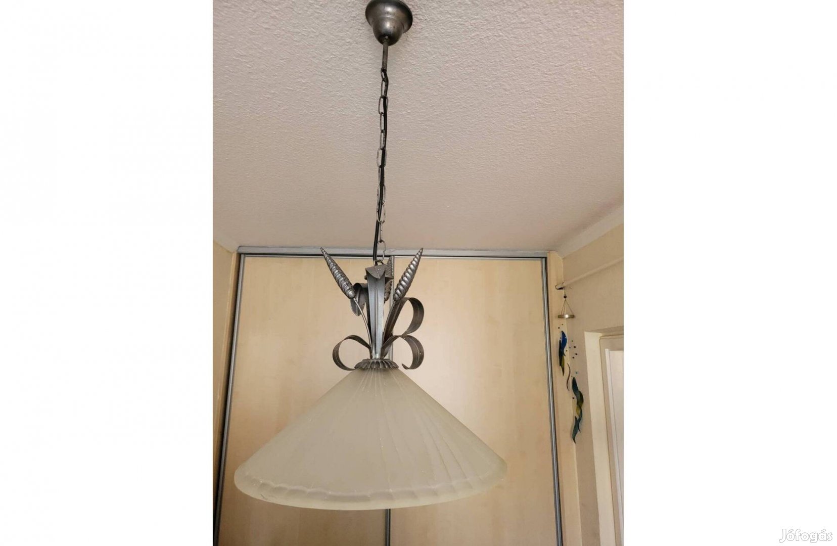 Eladásra kínálom a képen szereplő különleges design, fém, savmaratott üvegbúrás függőlámpát. A képek magukért beszélnek. Körbe fotóztam. Működik. A lánc rövidíthető. Ritka, különleges darab, súlya van a búra miatt.