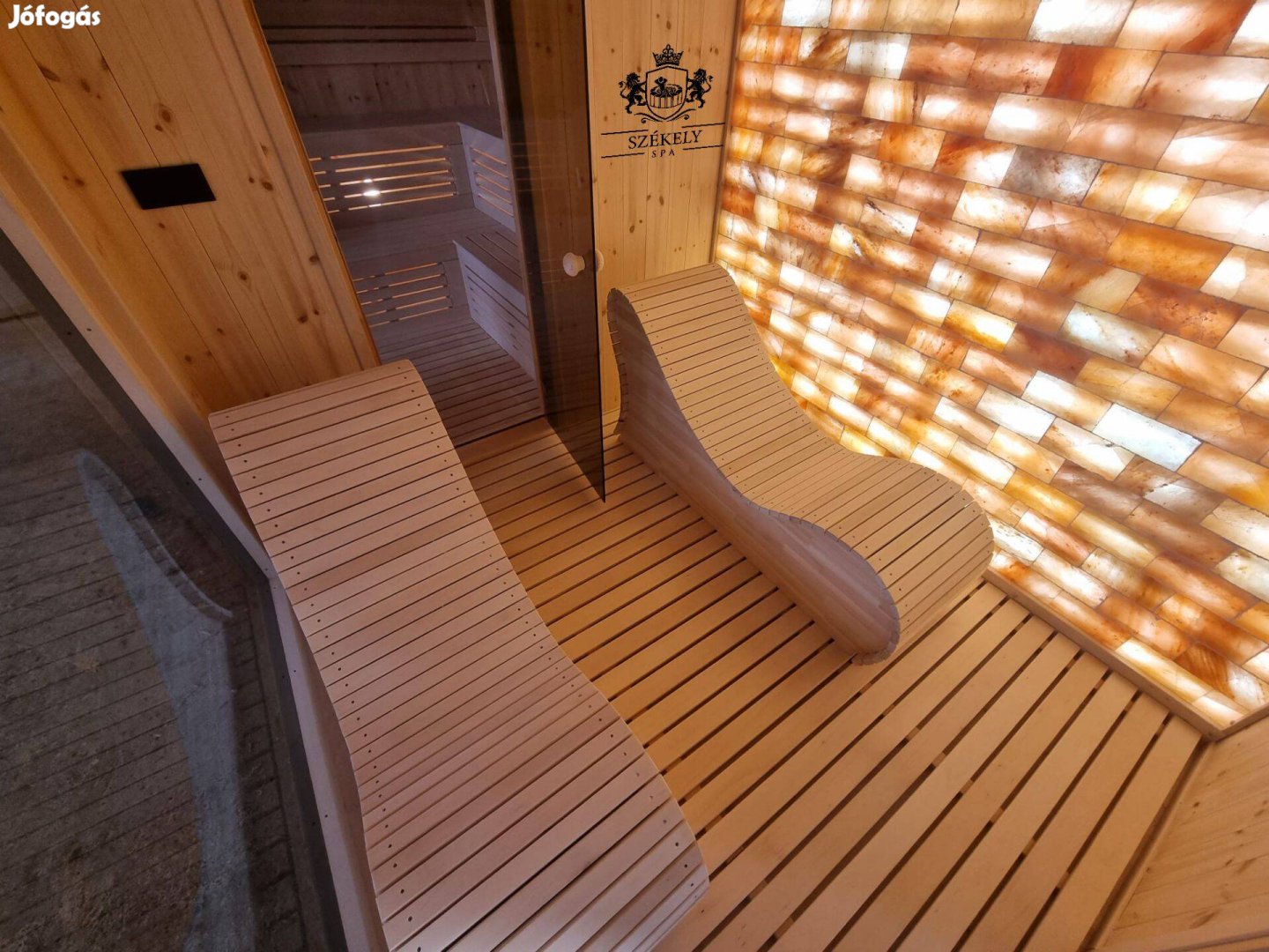 Kültéri prémium szigetelt szauna só falas relaxációs térrel