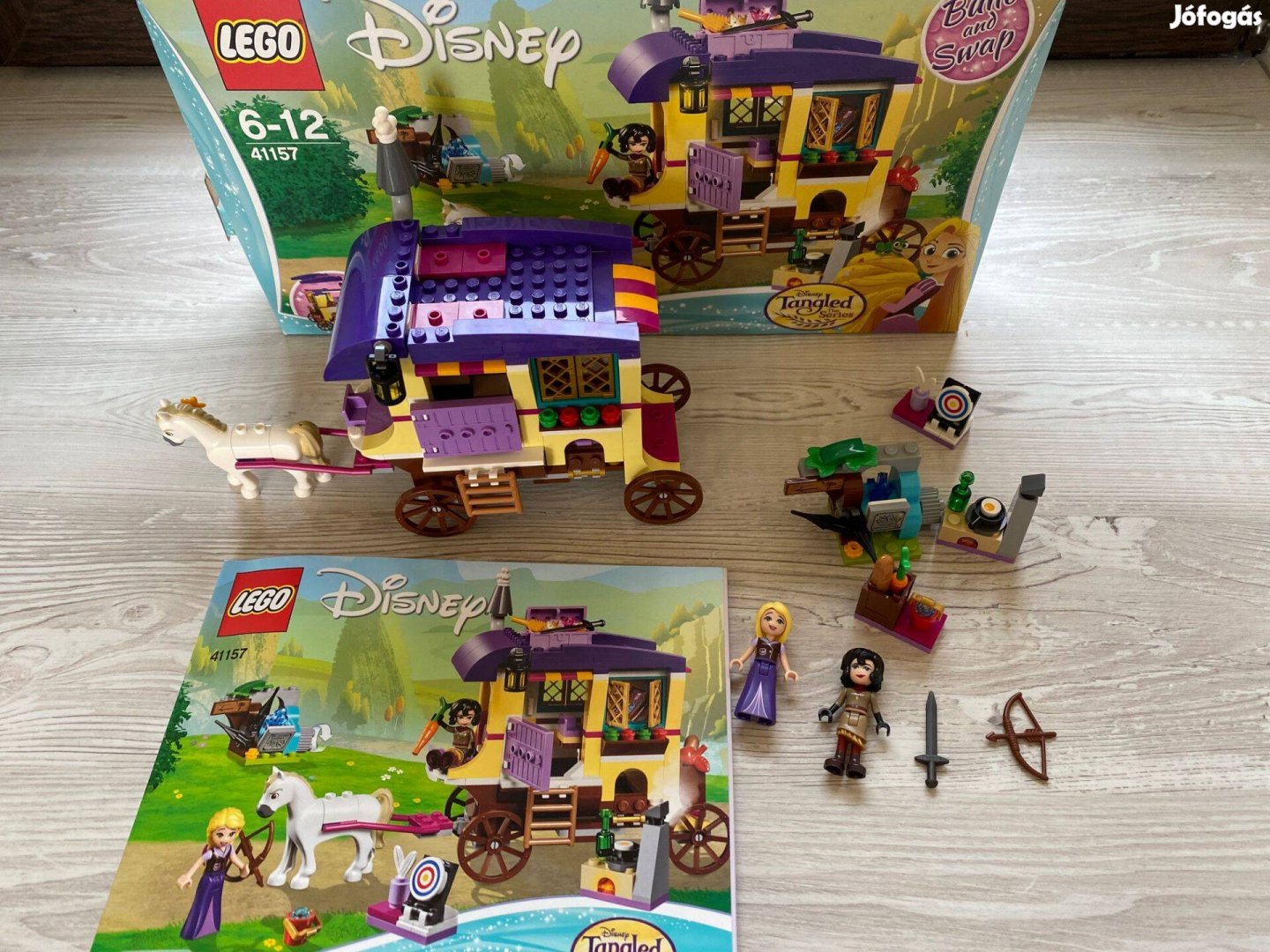 LEGO Disney Aranyhaj és a nagy gubanc - Aranyhaj utazó lakókocsija (41157) eladó dobozzal, leírással. A készlet hiánytalan, de az Aranyhaj figura nincs meg.