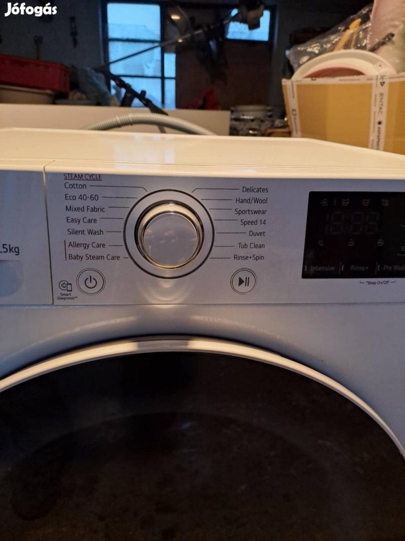 Eladó LG mosógép. 10,5 kg- mos kapacitás rengeteg funkcióval ellátott készülék. Alig használt, új állapotú még 3 év teljes biztosítás és még 6 hónap alap garanciával, számlával rendelkező mosógép.