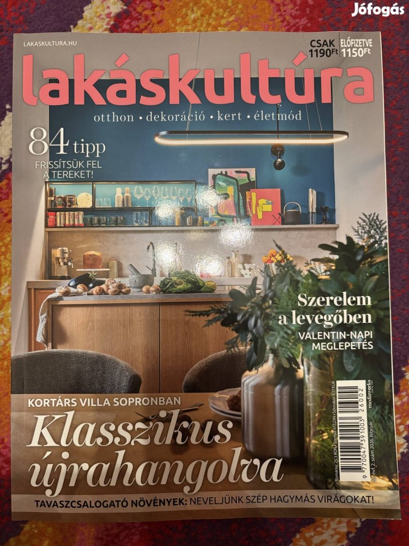 Eladó a Lakáskultúra magazin 2026 februári lapszámának egy példánya. Vadonatúj, egyszer sem olvasott.