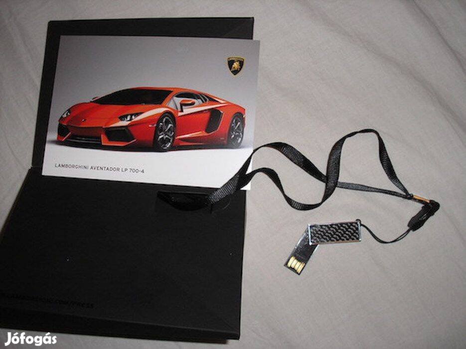 A Lamborghini Aventador modell egyedi, különleges USB 2.0 pendrive-ja. Fekete és króm színű, 2 GB-os, rajta a teljes anyaga a modellről szöveggel, fotókkal, adatokkal.