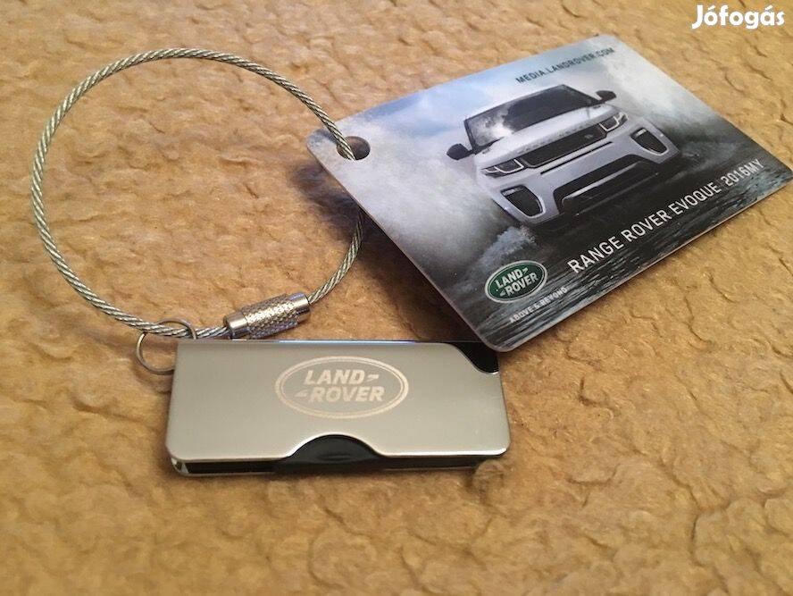 Az angol luxusmárka, a Range Rover autógyár Evoque modelljének elegáns króm USB 2.0 pendrive-ja. A mérete 8 GB-os, rajta információk, fotókkal, videókkal, adatokkal, szöveggel az Evoque és más Land Rover, Range Rover modellekről. Eredeti gyári termék.