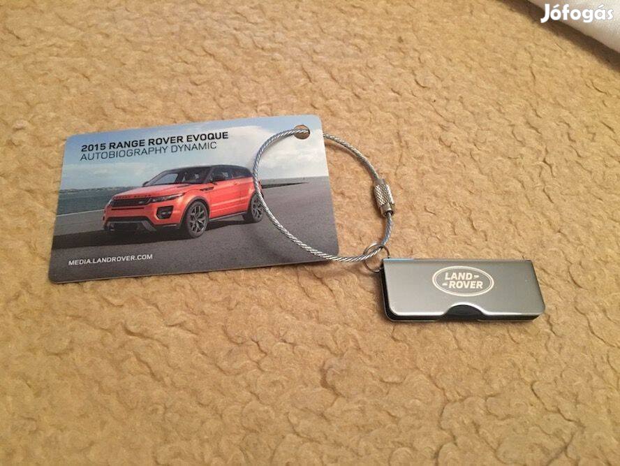 Az angol luxusmárka, a Range Rover autógyár Evoque modelljének elegáns króm USB 2.0 pendrive-ja. A mérete 4 GB-os, rajta információk, fotókkal, videókkal, adatokkal, szöveggel az Evoque és más Land Rover, Range Rover modellekről. Eredeti gyári termék.