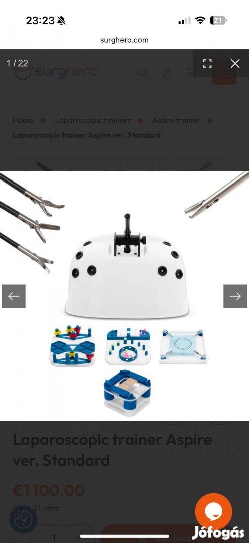 Laparo Aspire laparoszkópos trainingbox eladó, melyet sosem használtunk, ki sem bontottunk. Hiánytalanul, gyári csomagolásában várja szorgalmas új fiatal orvos tulajdonosát. Eredeti ára 1000 EUR körül volt, most ennek kevesebb mint feléért megvehető.