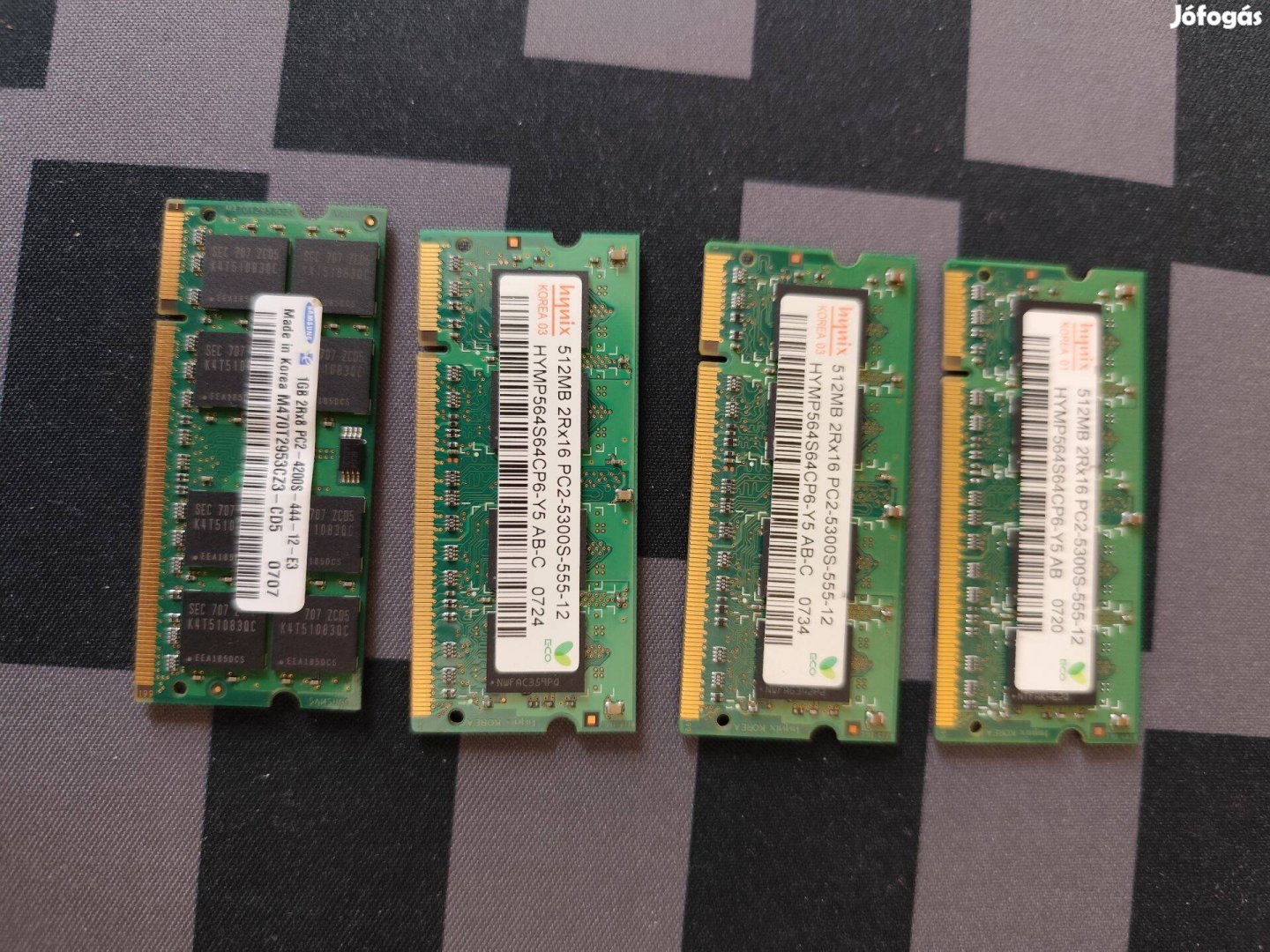 Eladó 4 db. memoria egyben.DDR II -ek.1 db.Samsung 1GB és 3 db.Hynix 512 Mb.Laptopba valók.