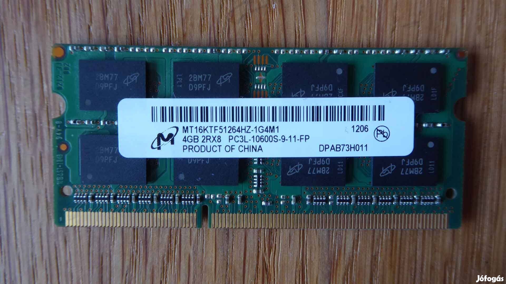 Laptop memória RAM DDR3 Micron PC3L-10600S (1.35V) 4GB