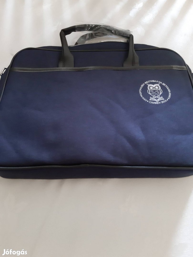 Teljesen új sötétkék laptop táska eladó. Két rekeszes, elől zippzáras . Mérete: 43x30 cm