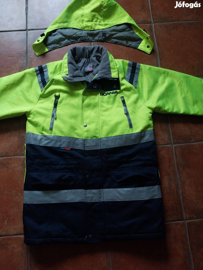 Scania kabát,steppelt bélés , kapucnis, ujj végek passzésak,sok zseb+rejtett zseb. Beleírt S méret,de én 172cm 85kg vagyok és pici szűk, így M ,vagy vékonyabb L -esnek ajánlom.