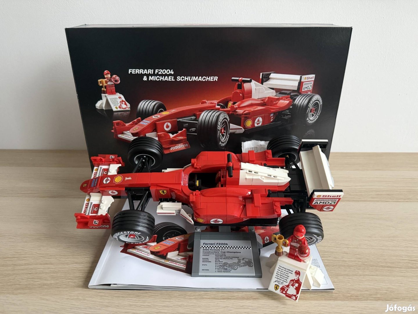Eladó a képeken látható egyszer összeépített, szépen felmatricázott Lego Icons 11375 - Ferrari F2004 & Michael Schumacher készlet.