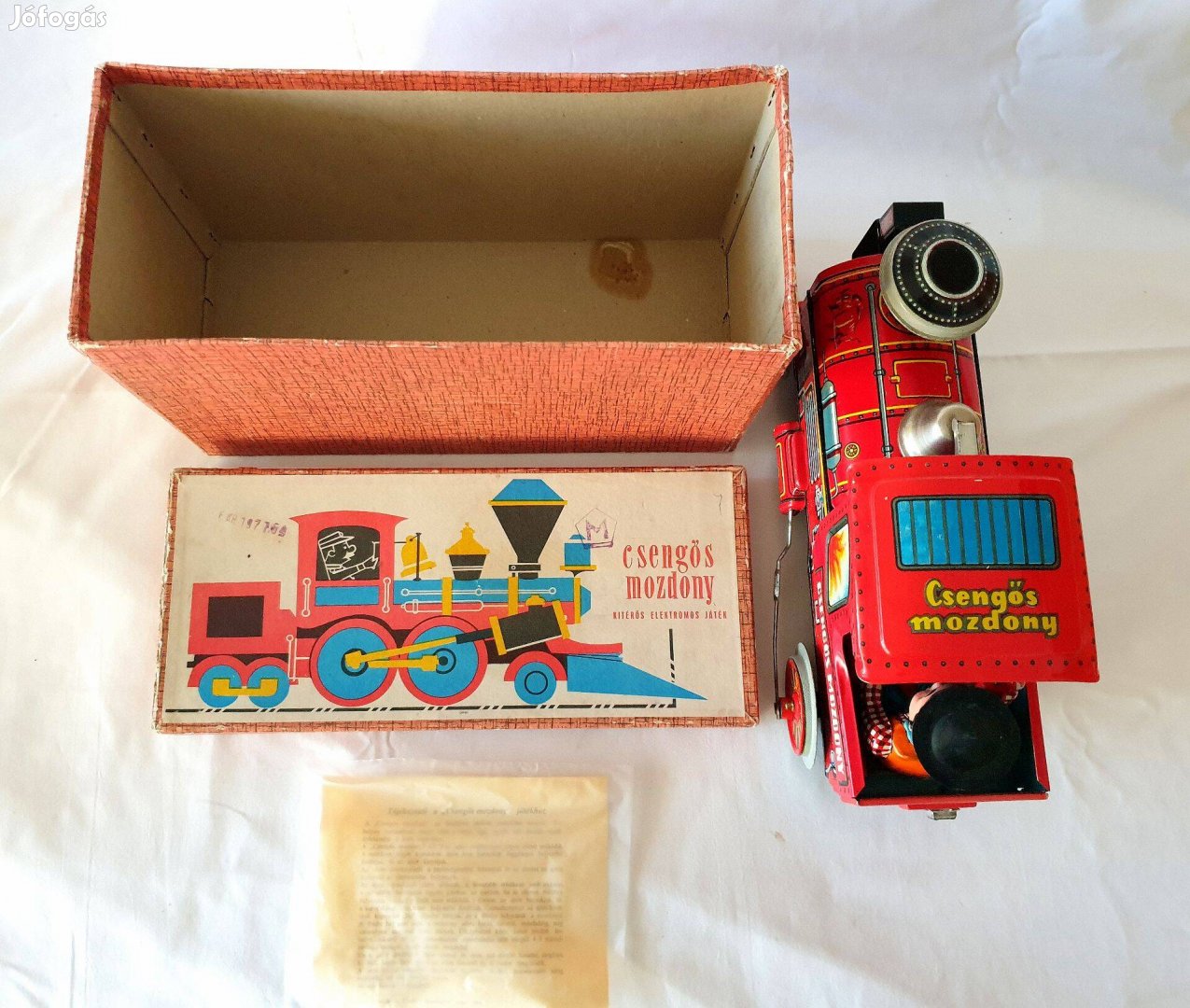 Lemezárugyári Csengős Mozdony .Dobozával,leírással.